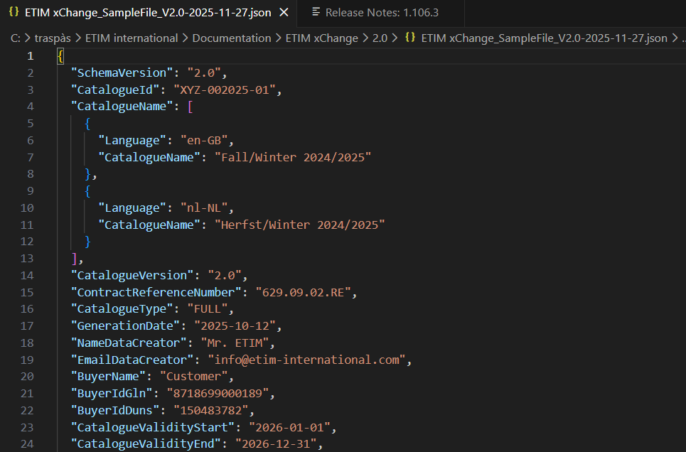 Este nuevo formato incorpora los campos de datos más importantes de ETIM BMEcat, pero además también recoge campos clave de otros estándares consolidados internacionalmente como DICO, GS1 o FAB-DIS, lo que lo hace más completo y versátil. En la versión 2.0 se han añadido campos de información de la sostenibilidad de los productos. Destacar finalmente que ETIM xChange está preparado para incluir todos los requerimientos de datos locales (país) necesarios.